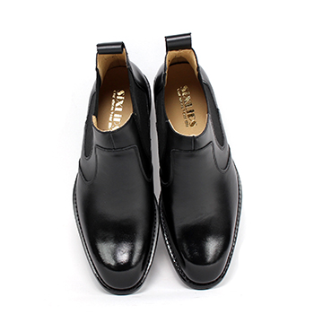 精緻經典雀爾喜靴是款相當有人氣的靴型款式, 選擇以兩側微加寬楦型來請台灣師傅製作, 同時靴身依然維持俐落風範, 腳背處加高的設計,降低穿著時所可能產生的壓迫感, 使穿著上更加舒適。 流暢U型鬆緊帶的設計讓穿脫更便利,展現一種英倫復古的紳士風範, 讓日常的搭配更容易,輕鬆營造出有型但隨性的風格。