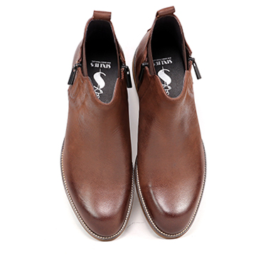 嚴選頭層真皮材質,設計概念以雀爾喜短靴為基礎,內外側拉鍊設計形成特有的摩登感,同時靴身依然維持俐落風範,呈現出其不會過於簡單的獨特感覺。 細荔枝紋牛皮仿舊感皮面擦色漸層效果,柔軟合腳穿著感也是其注目焦點之一。 無論是參加婚喪喜慶或者是正式場合,展現一種英倫復古的紳士風範,甚至是休閒風格都很適合來搭配的推薦鞋款。