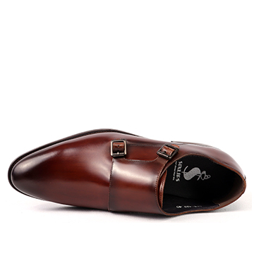 鞋面設計以水染刷色紋理細, 嚴選優質皮料,鞋面以水染刷色出木紋理, 突顯出美好真皮質感。 隱藏式鬆緊帶,全面性的包覆著腳, 沒有鞋帶的纏繞,方便穿脫。 雙釦孟克鞋很實搭,不論要搭配紳裝或是休閒牛仔褲都是很好的選擇。