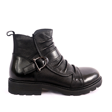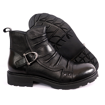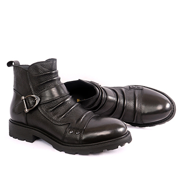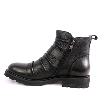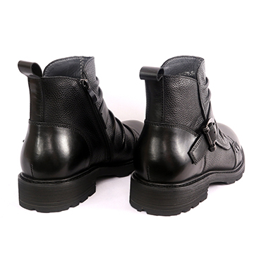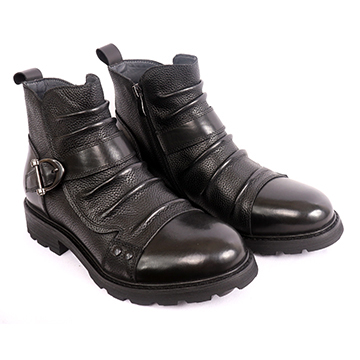 嚴選進口真皮,精選細緻質感擦色牛皮面料製成, 手工仿舊感皮面擦色漸層效果,和荔枝紋路和拉帕紋路交接,更顯粗獷隨興韻! 並使得每一雙鞋擁有明暗的色調與眾不同! 設計概念以帥氣、個性的風格短靴,形成獨有的粗獷感來直接表現。 並採用拉鍊設計,使短靴款式方便穿脫,若有騎乘檔車的騎士們, 可以避免因鞋帶鬆脫產生危險! 側方調節金屬扣,能鬆緊調節!
