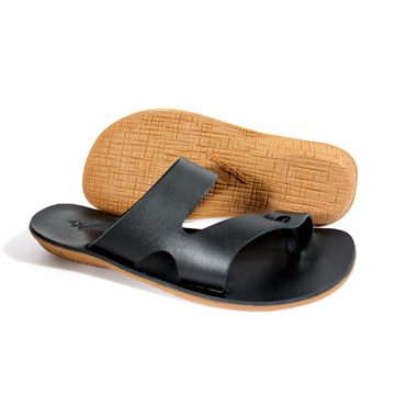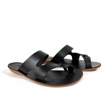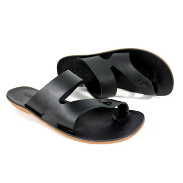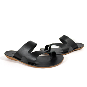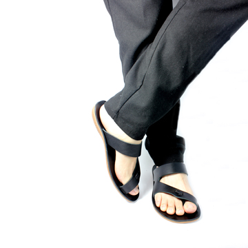 sixlips 雅痞時尚真皮休閒涼拖鞋 黑