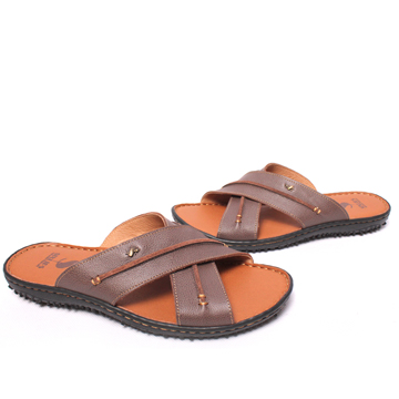 sixlips 時尚減震真皮手縫X型涼拖鞋 咖啡
