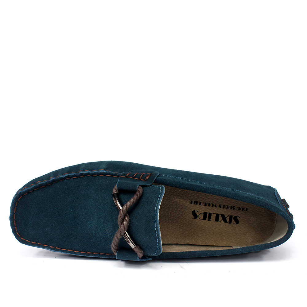 sixlips 英倫雅痞金屬麻繩麂皮豆豆鞋 土耳其藍