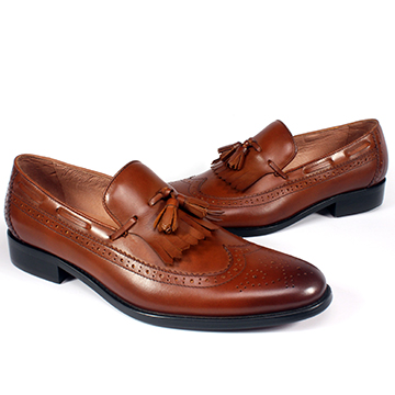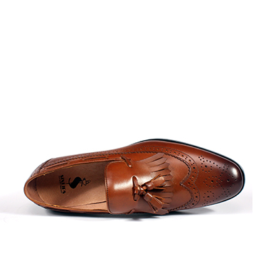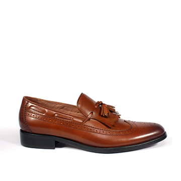 鞋面嚴選進口真皮,鞋面以全雕花翼長翼紋雕孔延伸至近鞋跟,淺口的設計使穿脫更為方便。翼紋結合流蘇和流蘇穗飾點綴,呈現出優美細節及精緻的工藝質感。顯現出雅痞典雅風格。