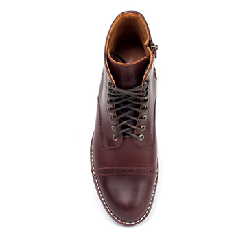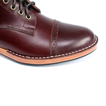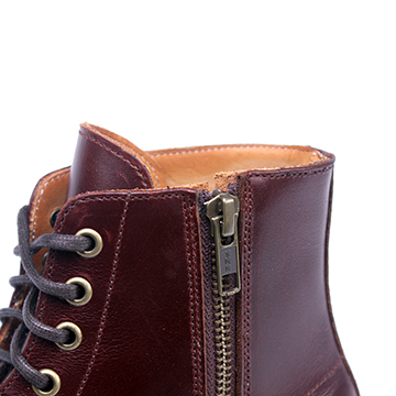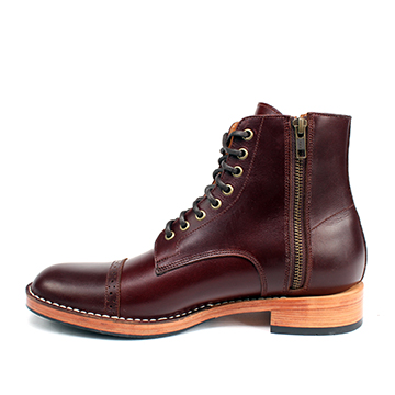 經歷了一年多,和製鞋團隊們,及師傅不斷討論設計開發,終於完成首款皮底靴款。 橫飾雕花拉鍊德比短靴,使用八孔的銅扣鞋眼扣,與經典不變的Punched Cap Toe 橫飾雕花,結合寺孝良品短靴特色:內側拉鍊設計,可以快速穿脫,希望穿脫不會成為負擔。 開發製鞋團隊將靴底以皮底手工製作,用 Stitch-Down手縫外翻製法,將鞋面外側內裡邊緣透過內底外底直接用 Stitch-Down工法結合在一起,鞋底彎曲度佳,重量輕盈。 整雙以牛皮製作,手工裁剪,沖孔,針車,Stitch-Down工法縫底,皮底結合,皮跟底拋光。經過300多道繁複精心工序,才能完成一雙永流傳紳士短靴!