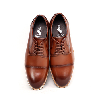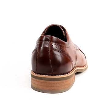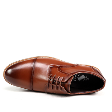 嚴選進口真皮,新開發復古鞋楦,讓腳厚和拇指外翻,提供雙腳零負擔的穿著感受! 維持德比鞋輪廓,和後方飾片雕花,將輪廓延伸,使鞋身更顯修長。 鞋底採用淺棕色木頭和橡膠發泡底,整體呈現休閒感的紳士皮鞋,無論紳裝或牛仔風,都可以穿出自己的風格!