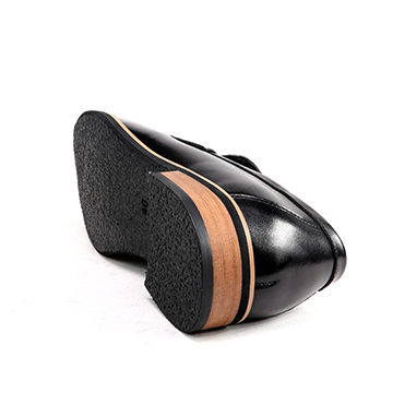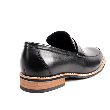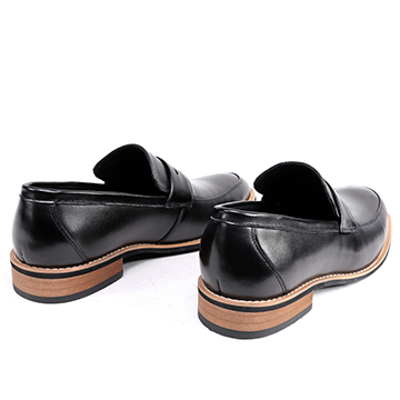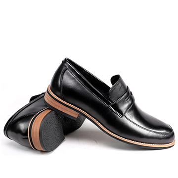 嚴選優質真皮,穿脫方便俐落,舒適自在的輕便的經典樂福鞋面,順著鞋頭延伸出俐落的線條,更符合穿著的舒適感。經典黑,搭上木頭跟突顯質感。窄管褲、捲管褲或短褲穿搭,顯現出帥性雅痞時尚。是紳士鞋櫃裡不可缺少的鞋款之一,也是雅痞風潮的席捲,絕對必備的時尚單品。