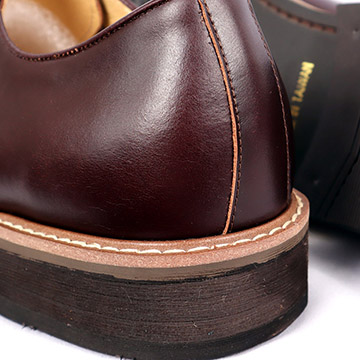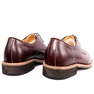 鞋楦為獨家新式楦型,兩旁微加寬,鞋身稍加厚,鞋頭呈現圓頭,卻不會顯現呆版,適合東方人的圓頭楦型,配上德比鞋鞋面,俐落修飾腳型!形成了正式和休閒時品味紳士必備鞋款。